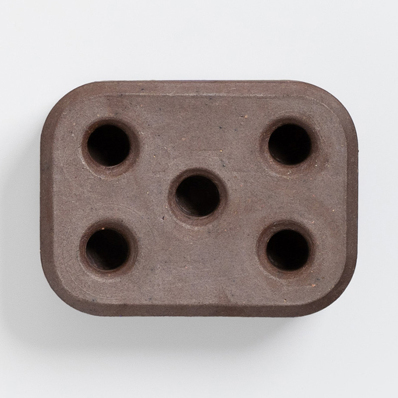 最小限のボリュームで、玄関先やポーチで気軽に使用でき、ドアストッパーとしても使えるリサイクル煉瓦の傘立て。フィンランドの穴開き煉瓦からインスピレーションを得てデザインした素朴な素材感が特徴です。