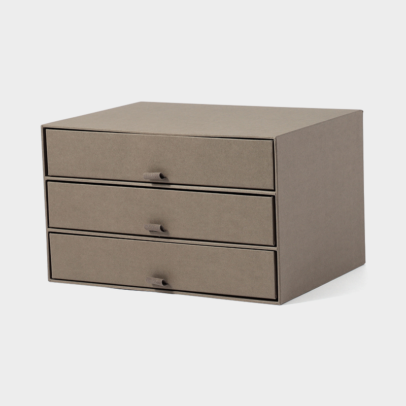 3段引き出しの収納ボックスは、書類や郵便物、充電器やちょっとした文具など細々とした日用品を種類別に仕分けるのに大変便利です。