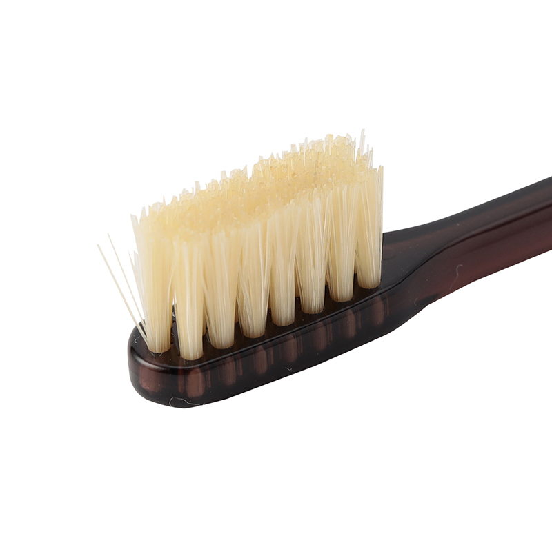 ブラシは細かい部分も磨きやすい、超コンパクトヘッドを採用。ヘッドに使われている天然毛(白馬毛・豚毛)は、歯のエナメル質にやさしく、美白効果が期待でき、何よりも歯ぐき、歯へのあたりが優しい歯磨き感を与えてくれます。また通常のナイロン毛に比べても毛先のひろがりにくさも認められており、一度使ってみると虜になる使用感です。是非一度お試しください。