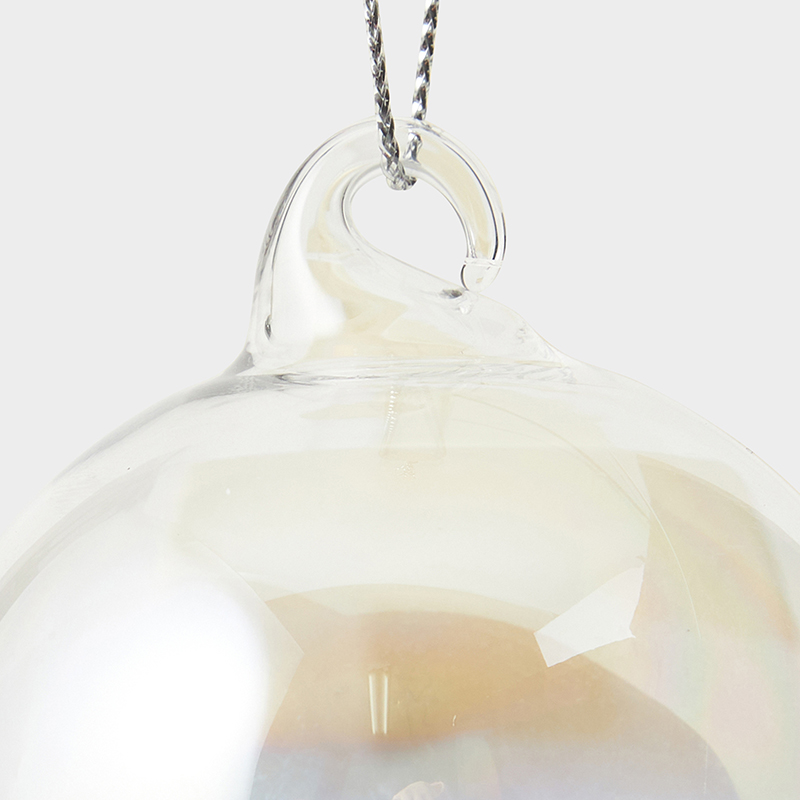 • クリア ガラス ボール ウィズ イリデセント コンフェッティ オーナメント