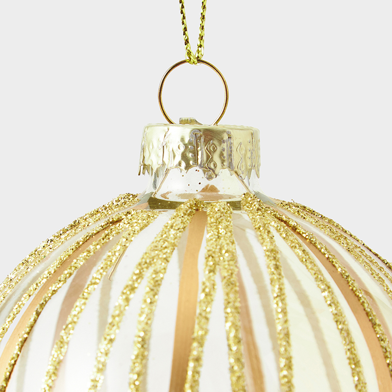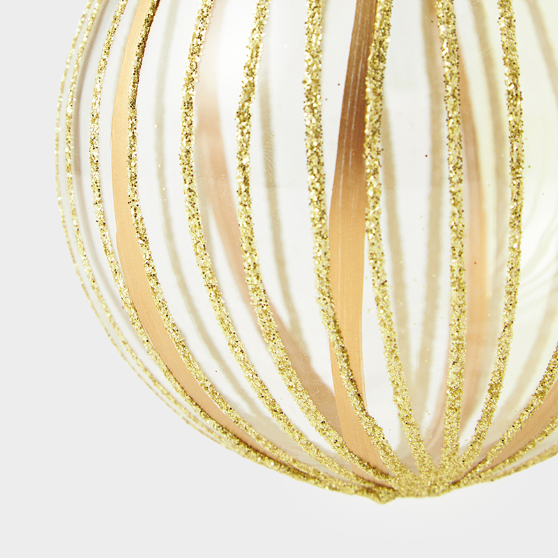 クリア ガラスボール ウィズ マット グリッターストライプ オーナメント