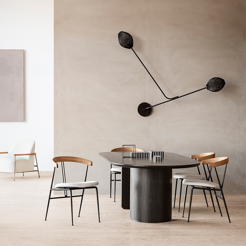 その名の通り、月から着想を得てデザインされたこの円形テーブルは、シンプルでありながら細部の造形美が見事で、他にはないデザインアイデンティティーが表現されています。