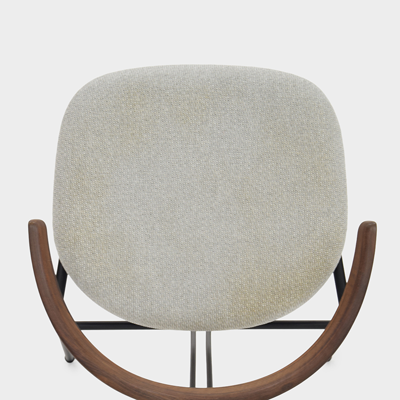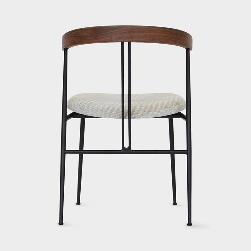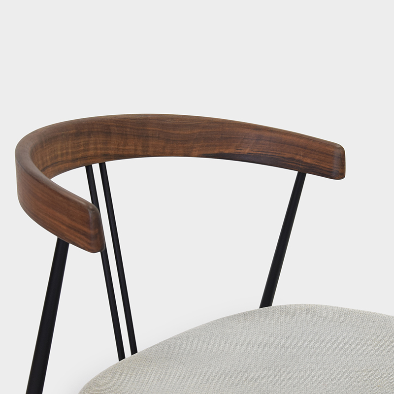 GamFratesiが得意とする職人技、創造性、素材理解が細部のデザインに表現されています。背もたれから座面に伸びる2本のラインは、楽器のヴァイオリンの並行弦を連想させます。