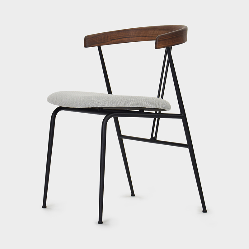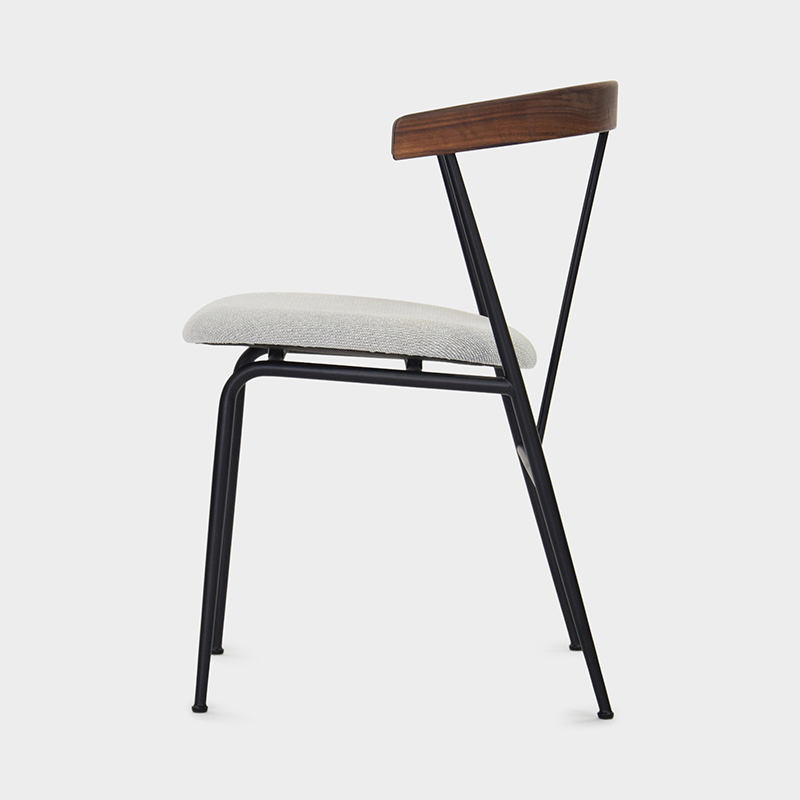 最小限にシンプルに抑えられたスチールパイプのデザインがスタイリッシュに背もたれを支ています。