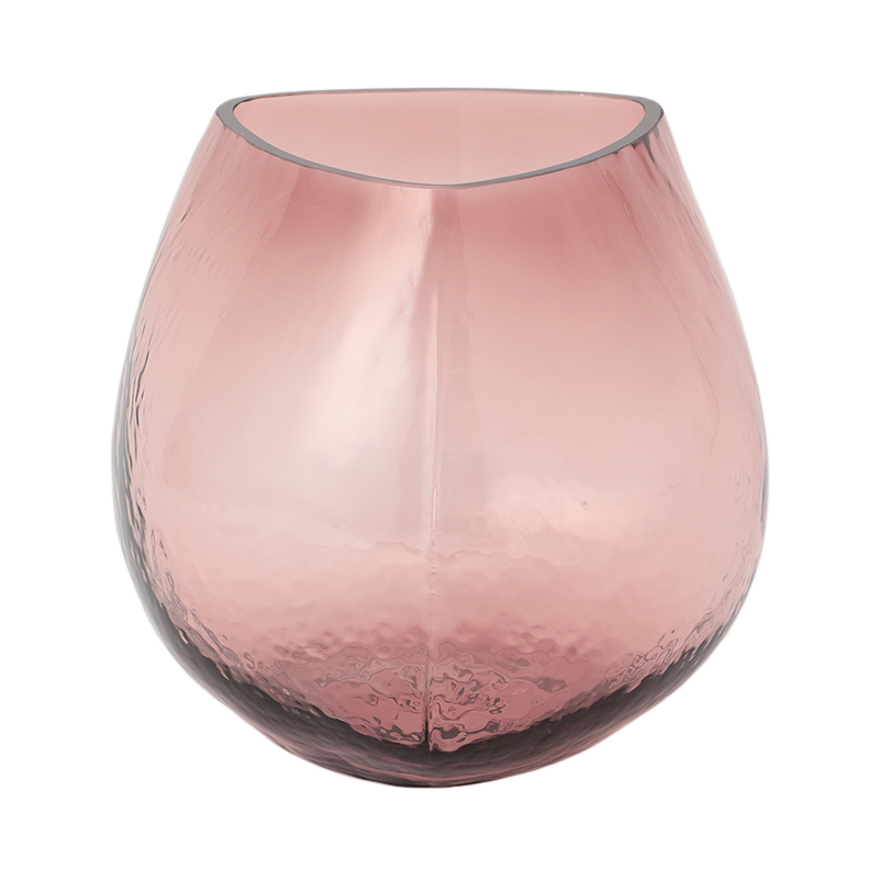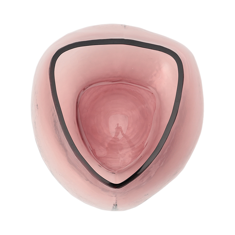 三角形の開口部が特徴的で、グレーがかったピンク色がシックでありながら甘い雰囲気を演出します。