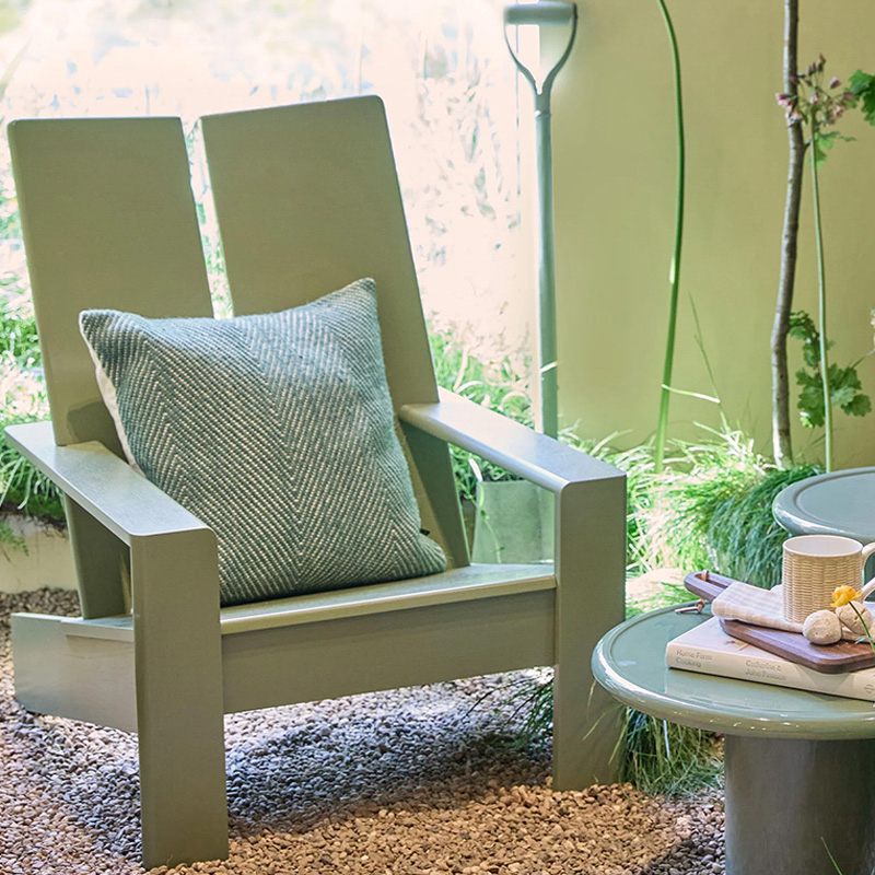 クラシックなアディロンダック・チェアを現代風にアレンジしたデザインで、独立した2つの背もたれが快適な座り心地を提供し、ゆったりとしたアームレストがリラックスした時間へ誘います。