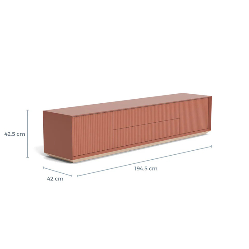 古代ギリシャ建築の柱からインスピレーションを得て生まれたこのコレクションは、日常の収納に彫刻のような深みと存在感を与えます。Pillar(ピラー)テレビコンソールは、ワイドな引き出しを2つ備え、背面には配線用の穴も設けられています。