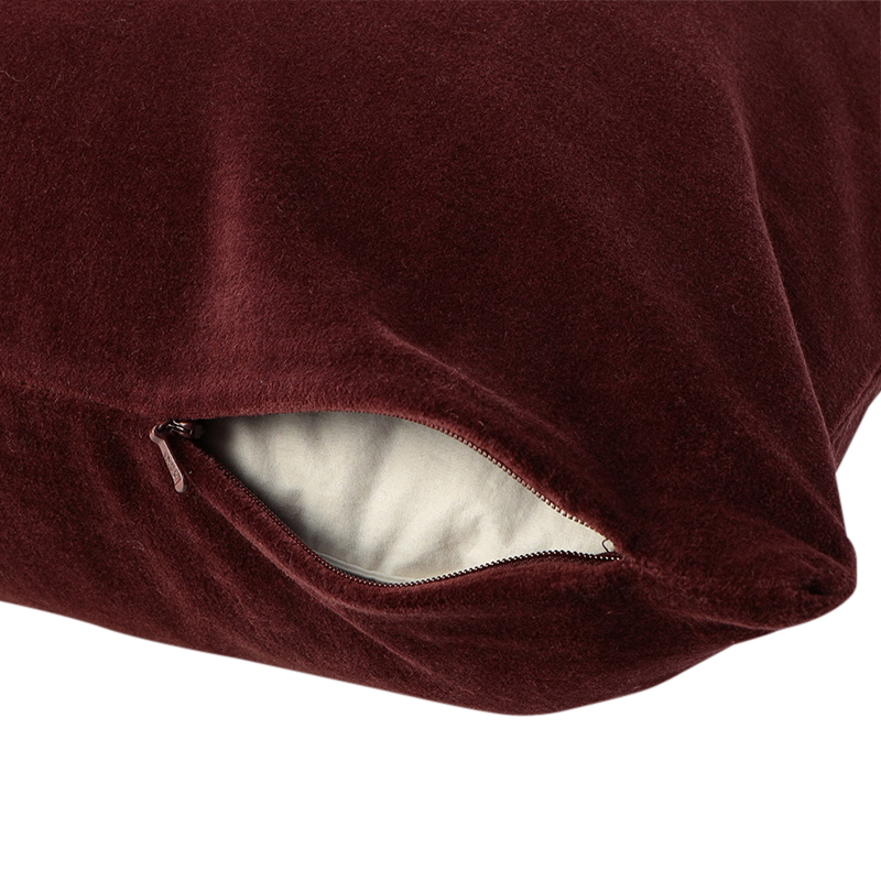 深いバーガンディ色がリビングスペースをスタイリッシュに引き立てるとともに、居心地の良い温かみのある雰囲気を作り出します。柔らかな肌触りで、インドの職人によって1点ずつ丁寧に作られています。