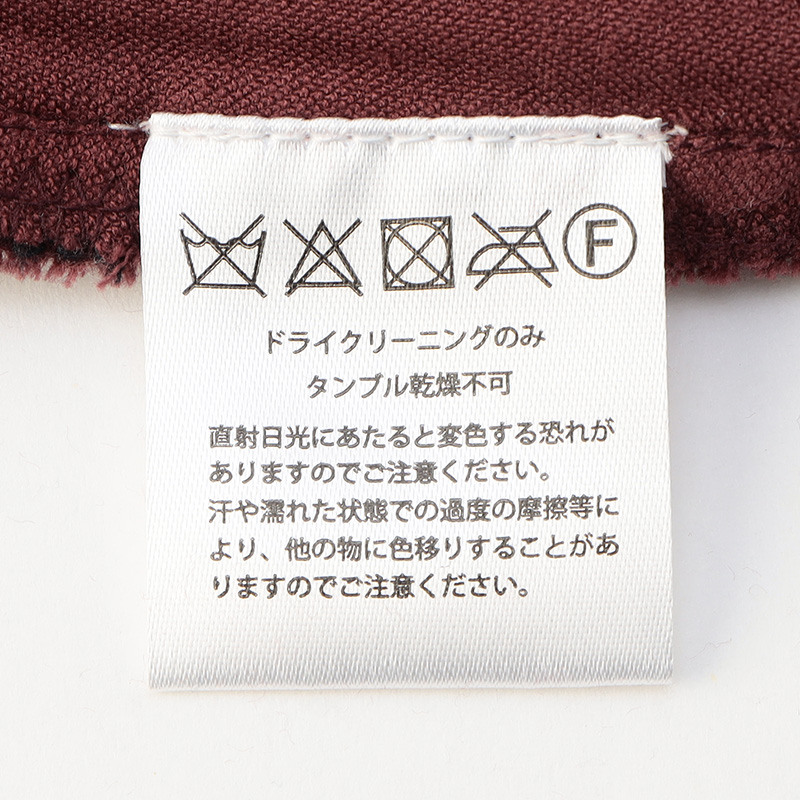 ドライクリーニングのみ、直射日光は変色の恐れがあるためお避け下さい。