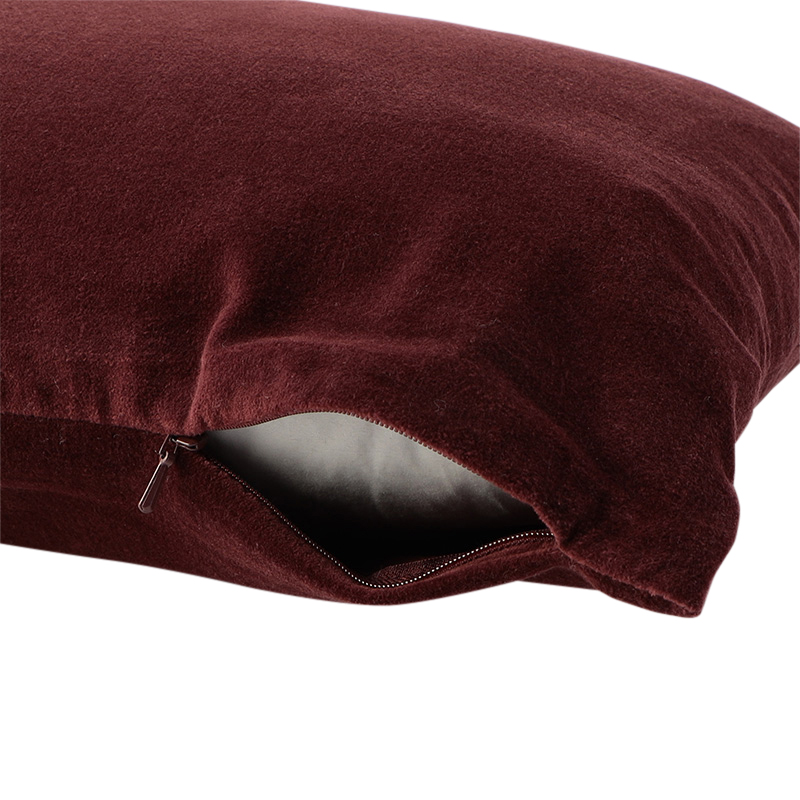 深いバーガンディ色がリビングスペースをスタイリッシュに引き立てるとともに、居心地の良い温かみのある雰囲気を作り出します。柔らかな肌触りで、インドの職人によって1点ずつ丁寧に作られています。