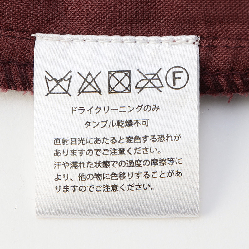 ドライクリーニングのみ、直射日光は変色の恐れがあるためお避け下さい。