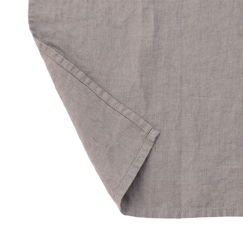 リネン製品は伸び縮みがあります。少し大きめにカットし縫製し、柔らかさを持たせるため一度洗います。ウォッシュと乾燥による伸縮率は3~5%が標準ですが、季節や糸の状態により、多少の差が生じる場合があります。