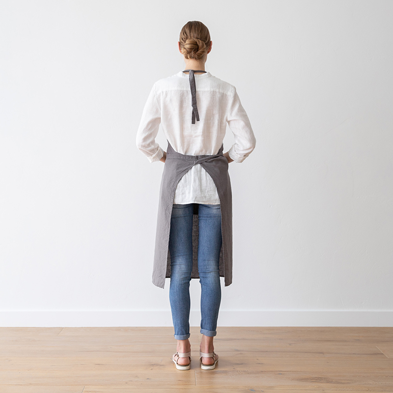 プレーンな生地としなやかさをもったTerraのエプロンはどんな服にも、どんな場面にもぴったり。