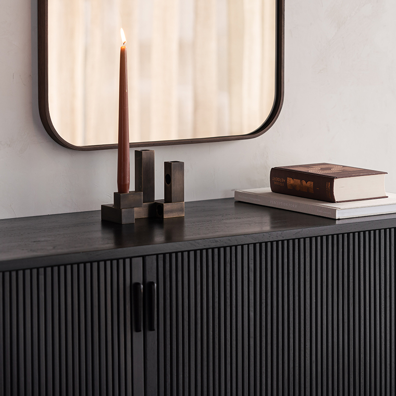 継ぎ目のない一体型の取っ手が、洗練さを感じさせ、積み重ねられたウッドスティックのデザインが、空間に豊かな奥行きと存在感をもたらします。
