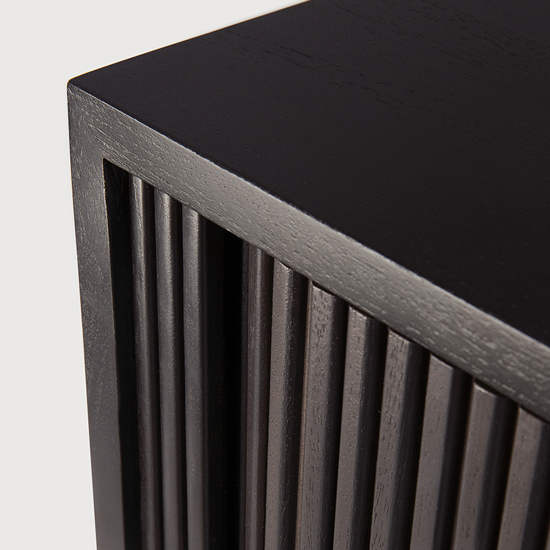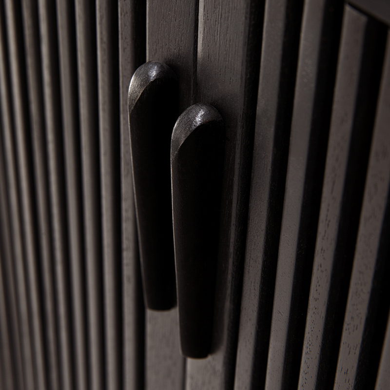 継ぎ目のない一体型の取っ手が、洗練さを感じさせ、積み重ねられたウッドスティックのデザインが、空間に豊かな奥行きと存在感をもたらします。