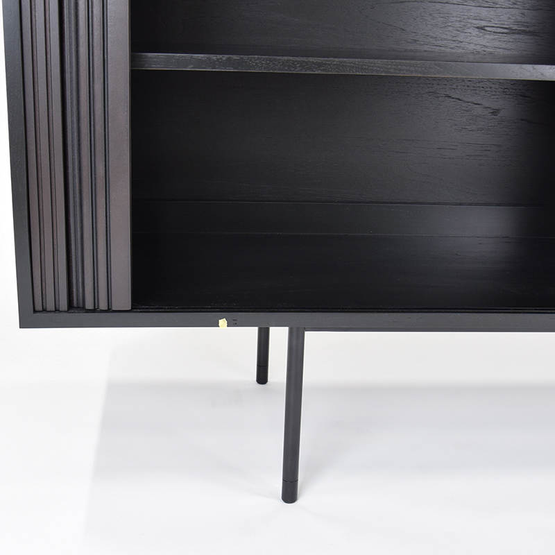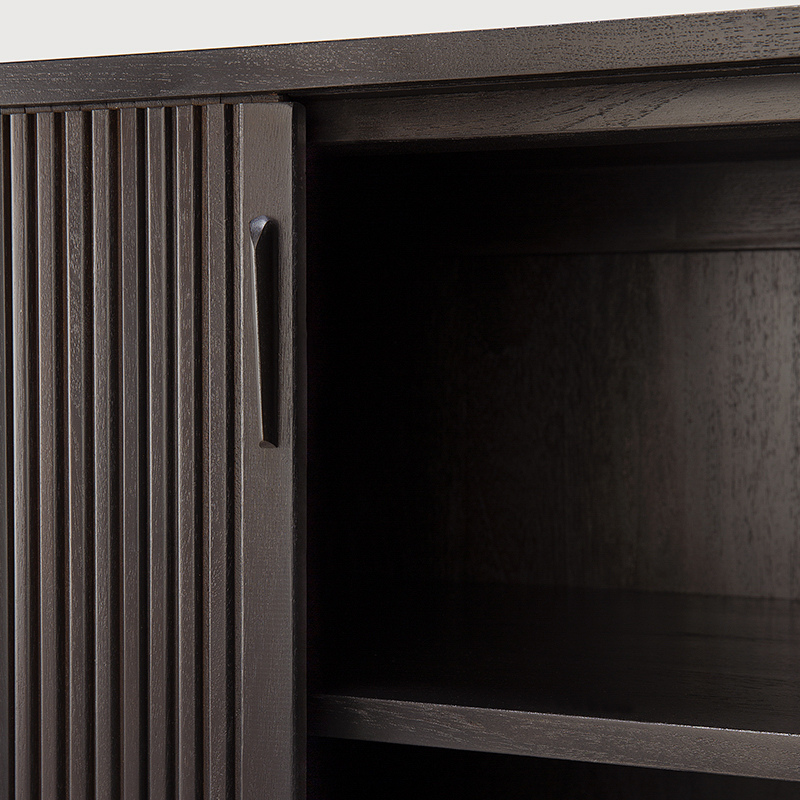 フルオープンの2枚のスライド扉と調節可能な棚板により、ライフスタイルや用途に合わせた柔軟な収納が可能です。
