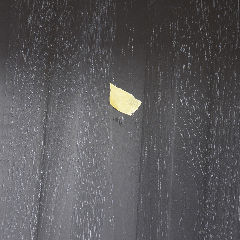 棚板1枚小さな角潰れ有り、キズ有り。右下、チップしているように見える節穴有り。