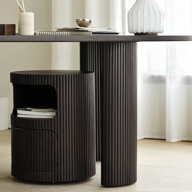 ブーメラン ドロワーユニットは、自然からインスピレーションを受けた、丸みを帯びた遊び心のある天板と、積み重ねた木材を思わせるカーブした脚部が印象的なデザイン。移動に便利なキャスター付きで、実用性も高く、デスク下の収納としてはもちろん、単独でも美しい存在感を放つドロワーユニットです。