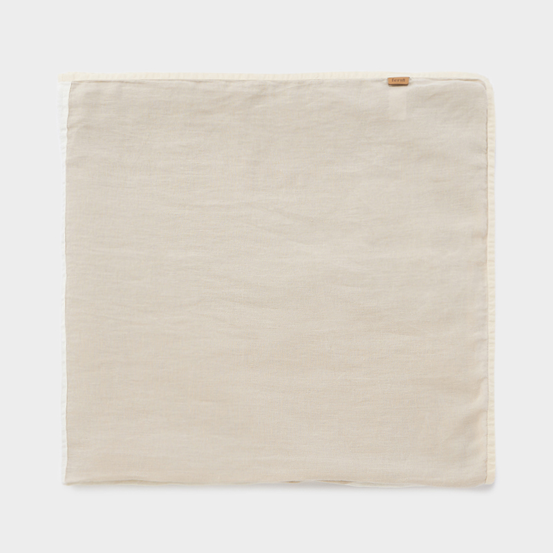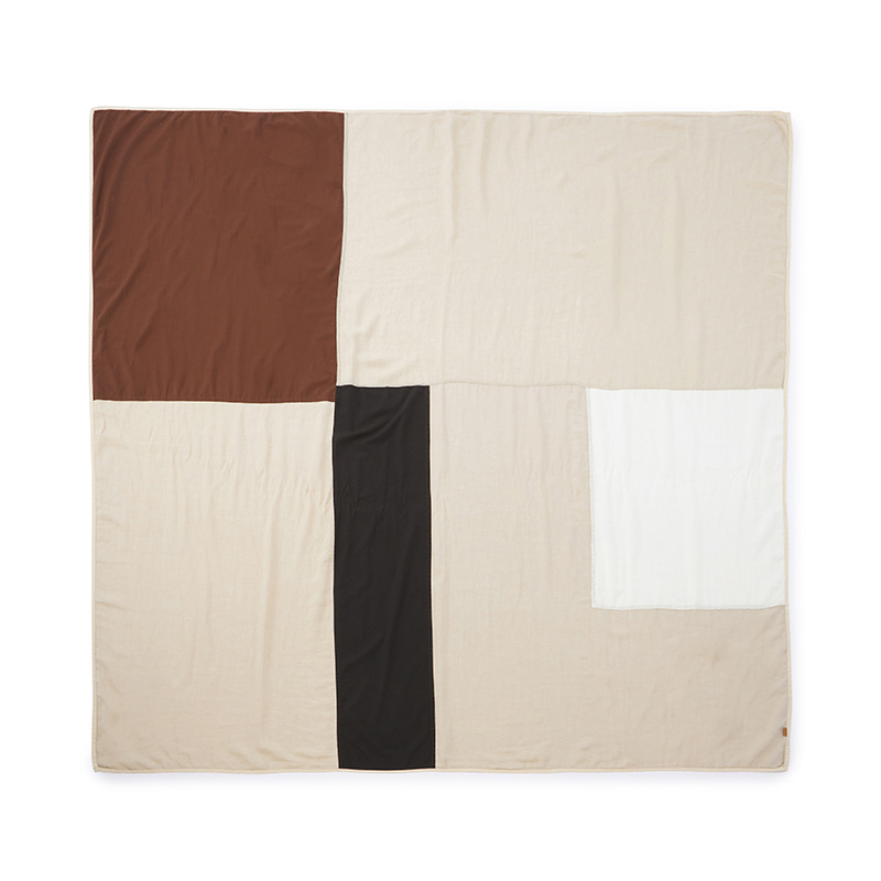 伝統的な韓国のポジャギ技法に着想を得て、リネンとオーガニックコットンのスクエアを組み合わせた現代的なパッチワークで仕上げられています。軽量で折りたたみやすく、使わないときの収納も簡単です。