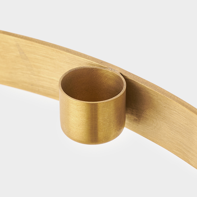キャンドルの炎が真鍮部分に達する前に必ず火を消してください。熱により跡が残る可能性があります。また、点灯中のキャンドルからは絶対に目を離さないでください。ナチュラルな素材で作られた、ミニマルで多機能なキャンドルホルダー。