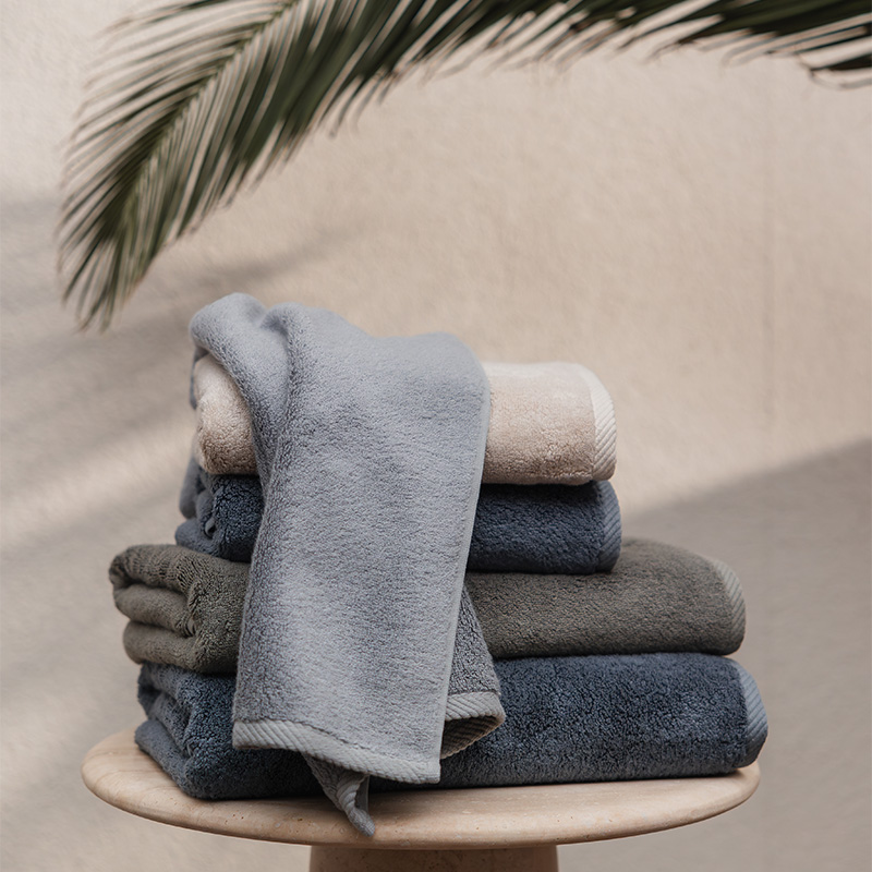 綿に、木などの天然素材を原料とした繊維(モダール)を組み合わせ、そのゴージャスな質感を実現しています。吸水性にも優れ、洗い上がりの肌をしっとりと繊細に包み込んでくれます。