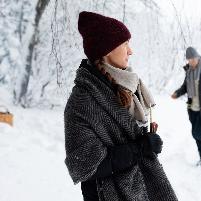 MARIA(マリア)ポケットショールは、主にスカンジナビア産のウールを使用して作られています。
