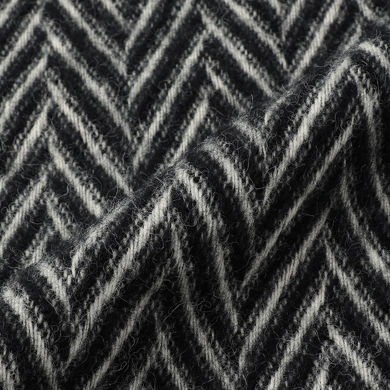 凹凸が感じられる立体的な構造は、生地に厚みをもたせていますが、シャープな織柄によって羽織るとすっきりとした印象に仕上がります。