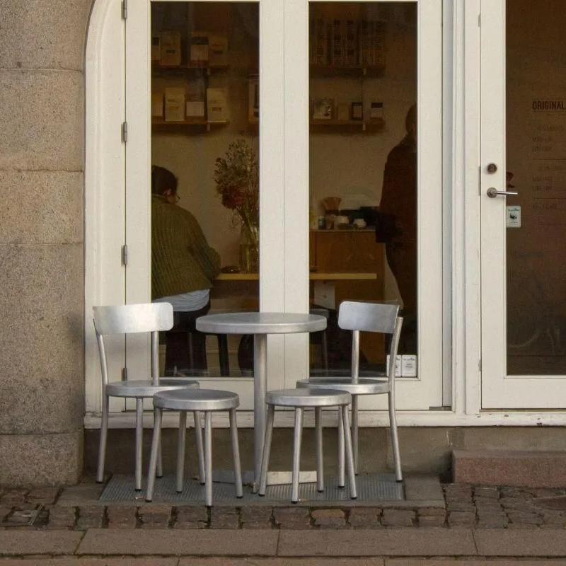 ポルトガルで「Tasca」と呼ばれるローカルなレストランから着想を得て、屋内外を問わず使える軽量なアルミニウム製で、丸みを帯びたフォルム、手作業によるブラッシュ仕上げが特徴的です。