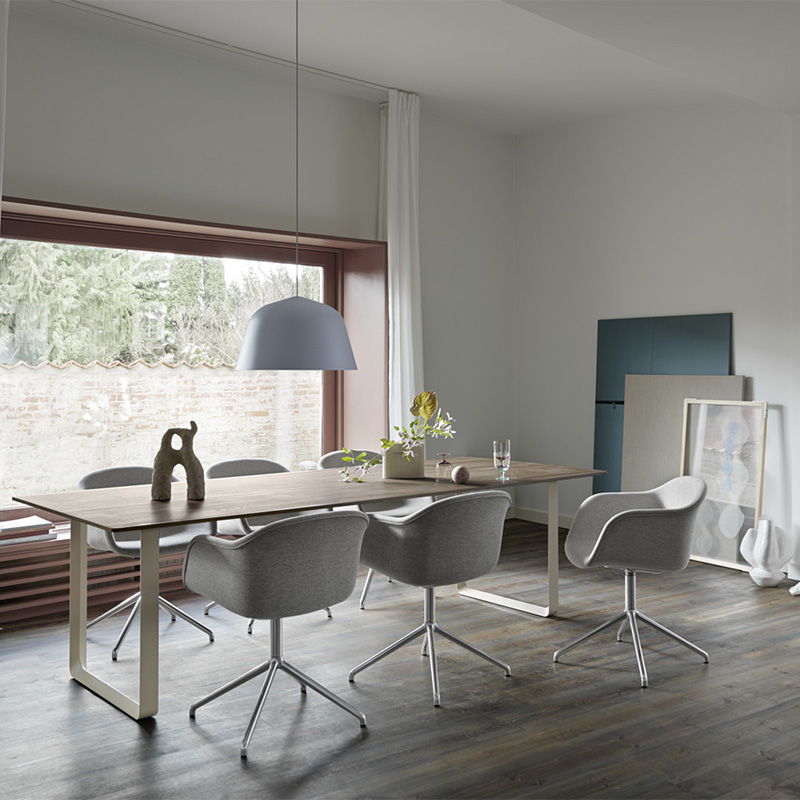 伝統的な火鉢からインスピレーションを得てデザインされたライトは、シェードのホワイトカラー際立ち、特にダイニングやコーヒーテーブルの上のライトとしておすすめです。