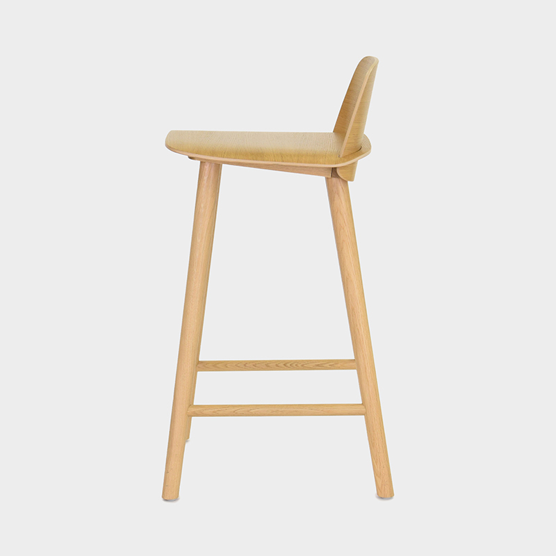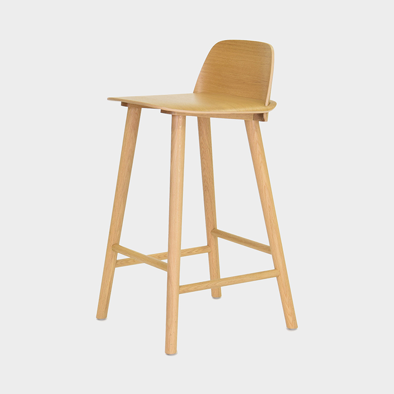 「ナード カウンタースツール」は、遊び心のある現代的なデザインと、スカンジナビアらしい木製の素材感が魅力です。