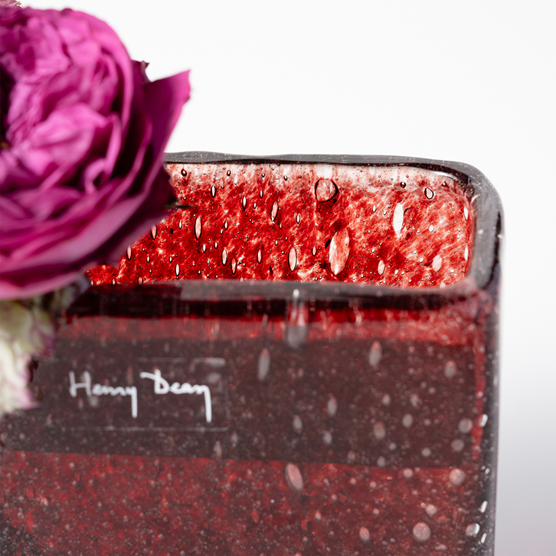 1972年にベルギーの小さな街で、旅と読書とモダンアート、ガラスをこよなく愛するHenry Deanによって設立されたブランド。彼は、日々の生活の中でふと浮かんだ映像をガラスによって表現してきました。現在は引退し、フランスの田舎町で静かな生活を送りますが、その情熱は二人の息子と娘に受け継がれています。古くからガラス生産が盛んな東欧の工場で、熟練した職人たちの吹きガラス製法によってひとつひとつ丁寧に作られた花器は、手に取ると冷たいガラスの中にハンドメイドのあたたかな温もりが感じられます。「Square XS」は卓上にぴったりのボリューム感で、一輪から数輪の花を活けるのにおすすめです。