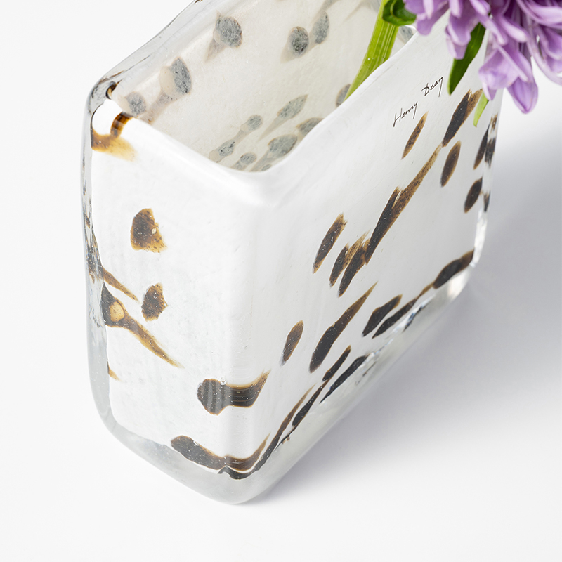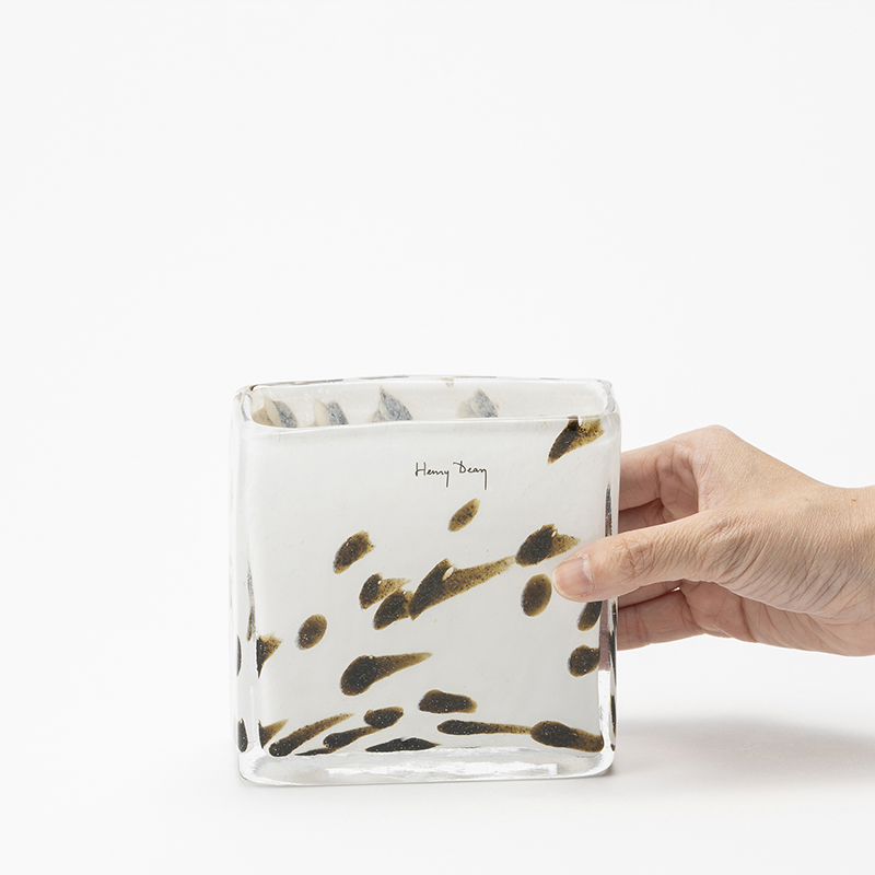 1972年にベルギーの小さな街で、旅と読書とモダンアート、ガラスをこよなく愛するHenry Deanによって設立されたブランド。彼は、日々の生活の中でふと浮かんだ映像をガラスによって表現してきました。現在は引退し、フランスの田舎町で静かな生活を送りますが、その情熱は二人の息子と娘に受け継がれています。古くからガラス生産が盛んな東欧の工場で、熟練した職人たちの吹きガラス製法によってひとつひとつ丁寧に作られた花器は、手に取ると冷たいガラスの中にハンドメイドのあたたかな温もりが感じられます。「Square XS」は卓上にぴったりのボリューム感で、一輪から数輪の花を活けるのにおすすめです。