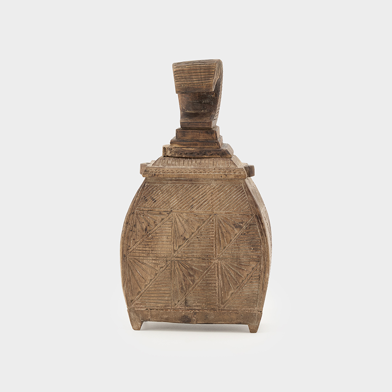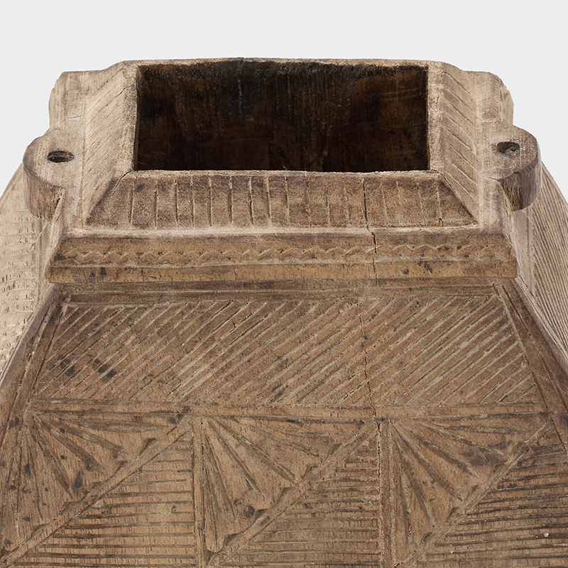 フォルムや彫刻された模様が建築物の一部のような佇まいです。上部が蓋になっていてアクセサリーなどの小物をしまっていただけます。