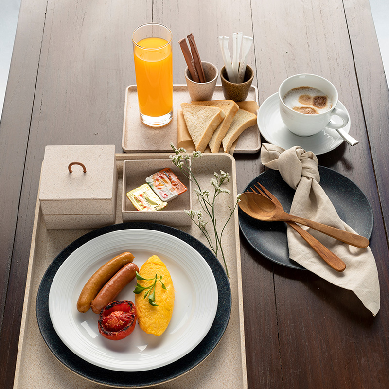 Husk™(ハスク)シリーズは、農業の製粉過程で廃棄される米のもみ殻を原料とした、環境配慮型のバイオコンポジット素材を採用しています。