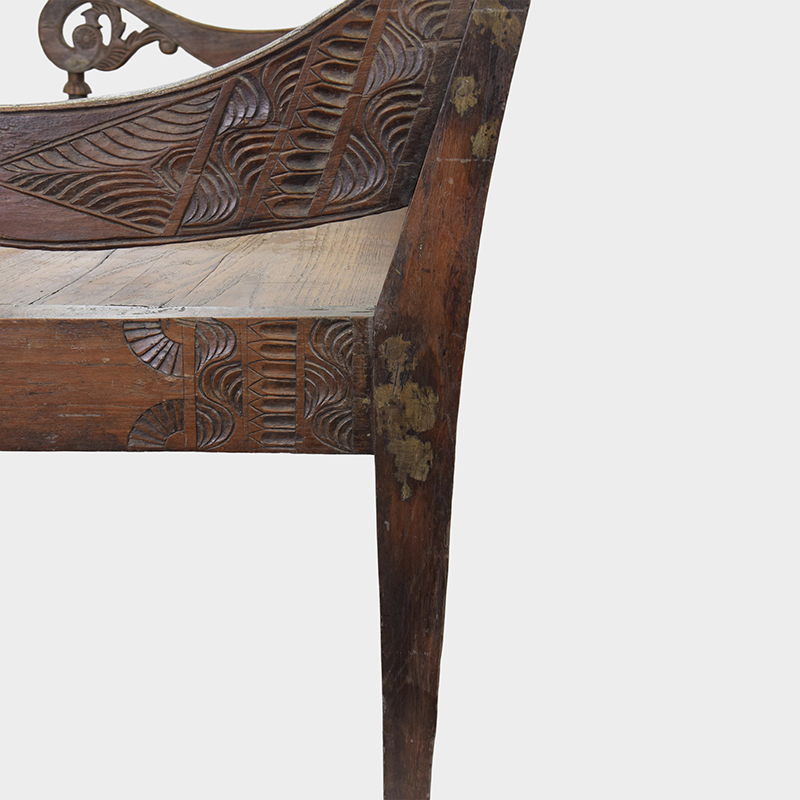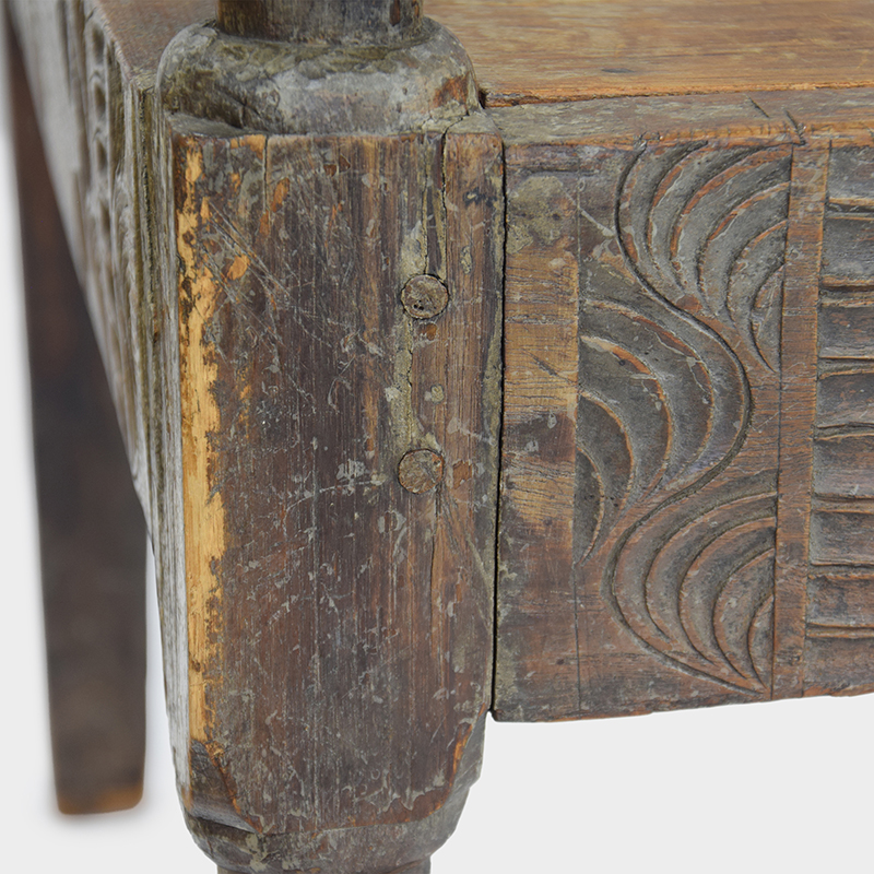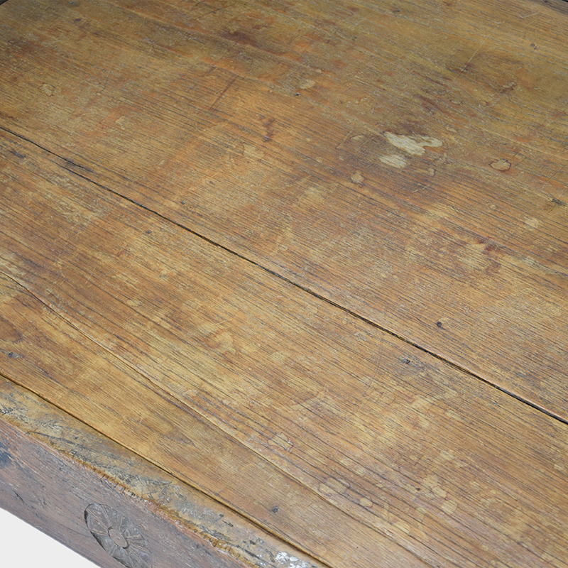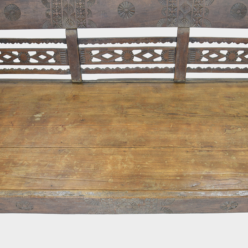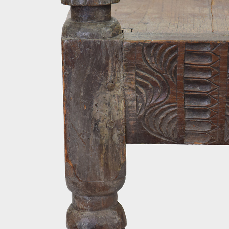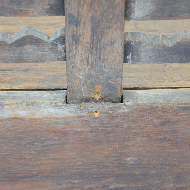 使い込むほどに味わいを増す、存在感のある一台です。木の質感と自然な色味が魅力のヴィンテージベンチ。