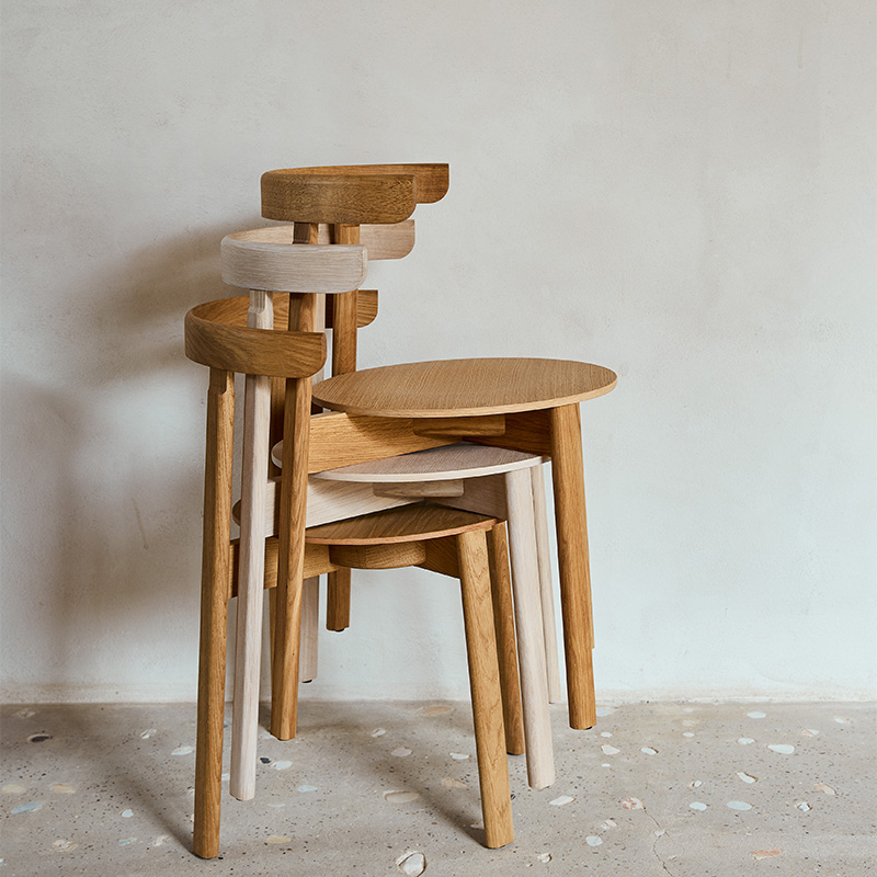 デンマーク・フュン島のダムスボの森と密接に協力した木製家具を中心に、ポルトガルの職人とのセラミックライン、ボリビアの職人とのアルパカのテキスタイルなど、素材の力を最大限に生かした独自のアイテムを展開。