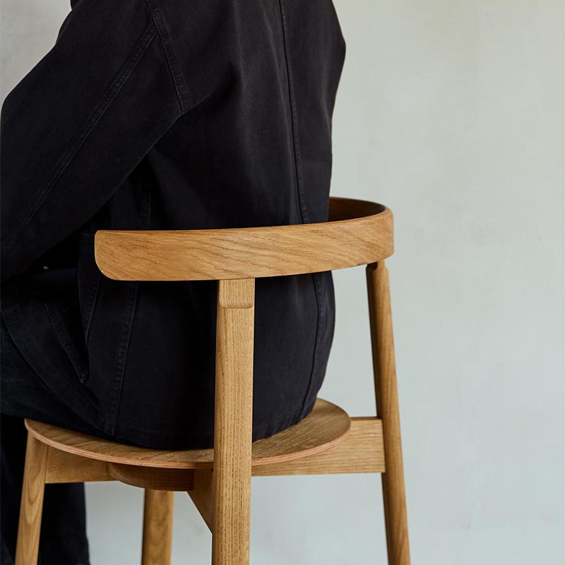Lunar は“月”を意味します。月の輪郭のような特徴的な丸みを帯びた背もたれと一体化したアームレストは、一枚の無垢材から作られており、肘と腰の両方を支え、最適なポジションで快適さを実現し、身体の向きを変えても様々な角度から身体をサポートします。