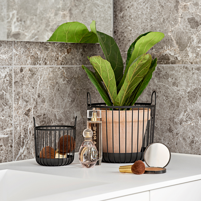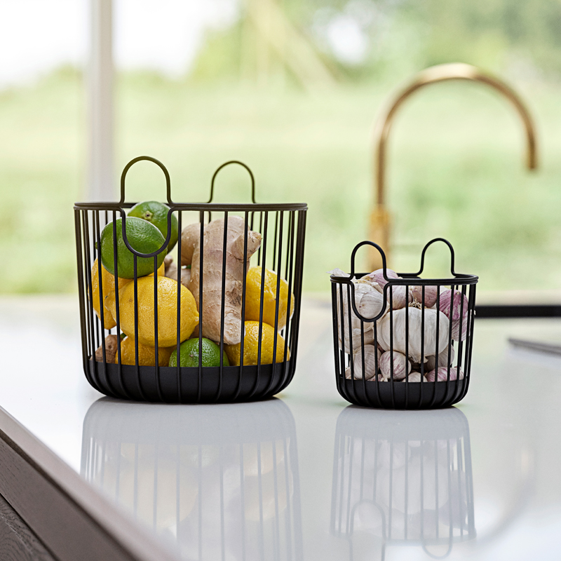 XL / L / M / S サイズあり、卓上用のミニバスケットはペン立て、バスルームではアクセサリー入れ、キッチンではフルーツや野菜入れに。