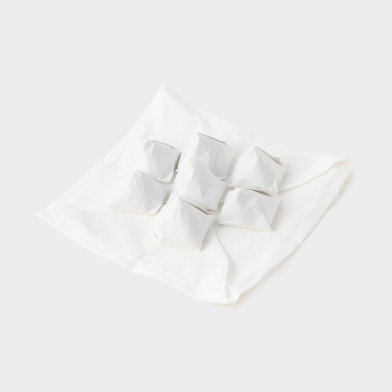 ガスールのタブレットを4~5片、お好みの器に移し、水で溶かして使います。水の量はガスールの分量の2.5倍~3倍。水を吸収して膨らみます。クリーム状になるまでそのまま、かき混ぜずに2~3分待ちます。水で溶かしてペースト状になったガスールを肌になじませ、洗い流します。