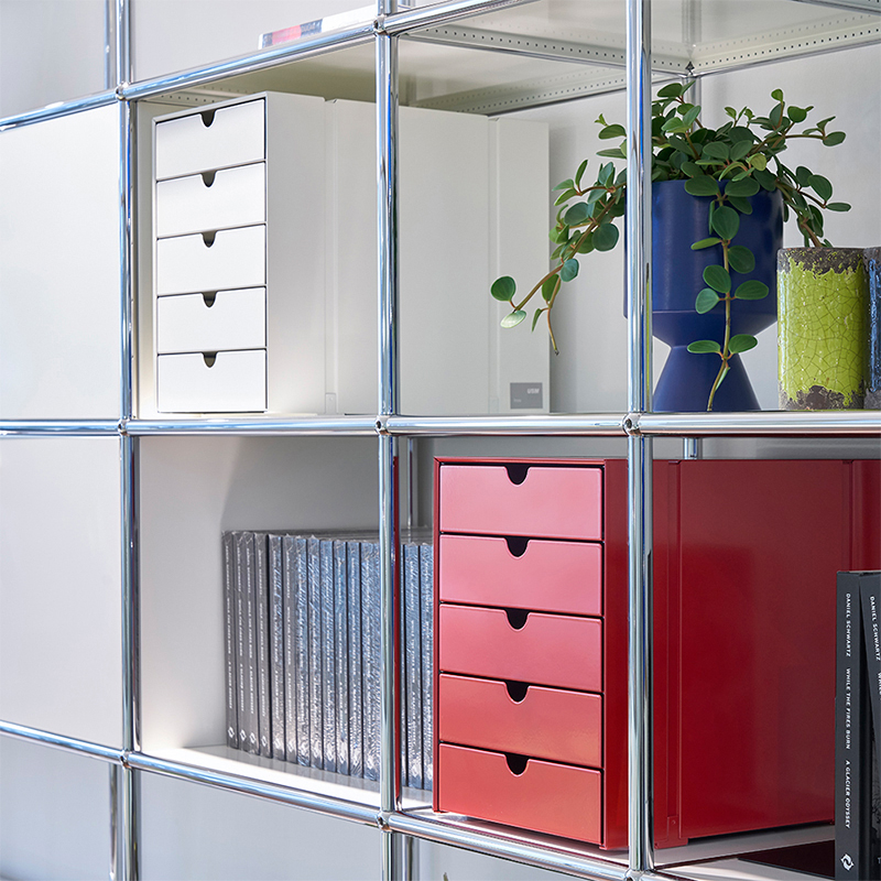 「形態は機能に従う」という企業理念を体現し続け、代表的なモジュラーシステムのUSMハラーをはじめ、高品質の素材、時代の流行に左右されない普遍的なデザイン、そして環境に配慮した生産技術が高く評価されています。