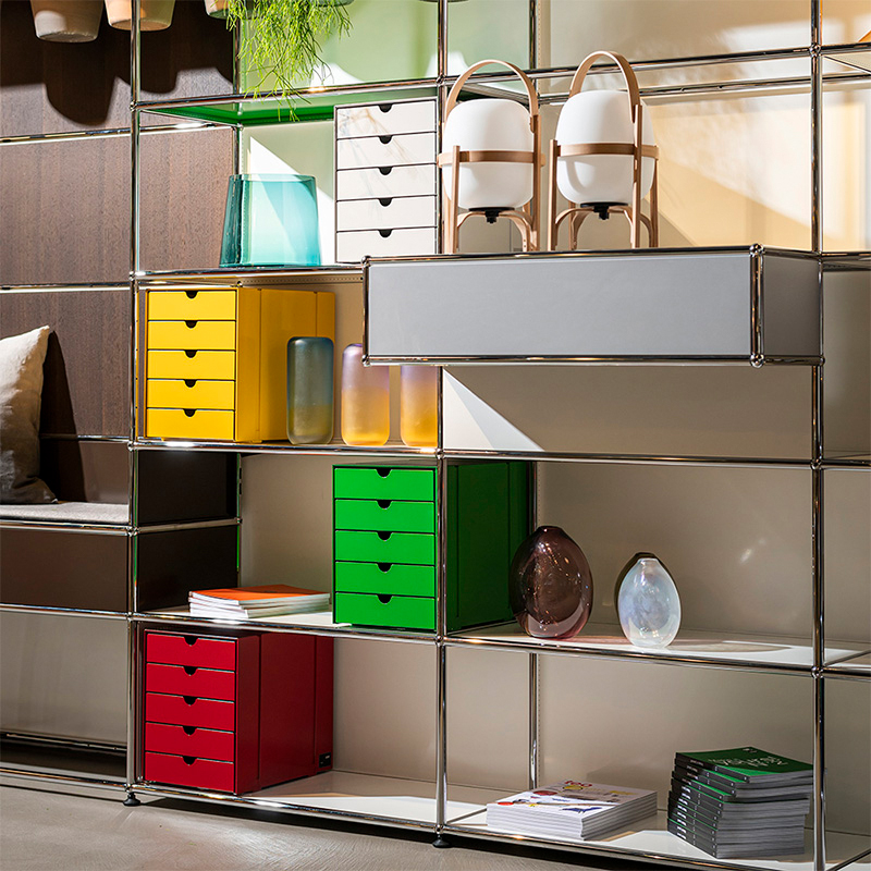 「形態は機能に従う」という企業理念を体現し続け、代表的なモジュラーシステムのUSMハラーをはじめ、高品質の素材、時代の流行に左右されない普遍的なデザイン、そして環境に配慮した生産技術が高く評価されています。