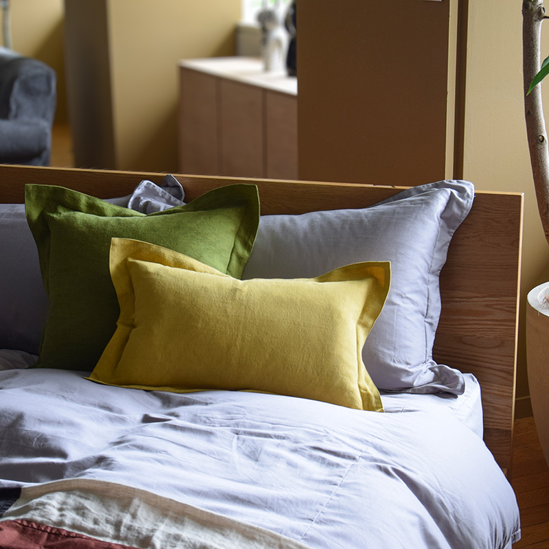 天然素材の力を活かしたヘンプ生地に、エレガントなフレームデザインを合わせた上質なクッションカバーです。
