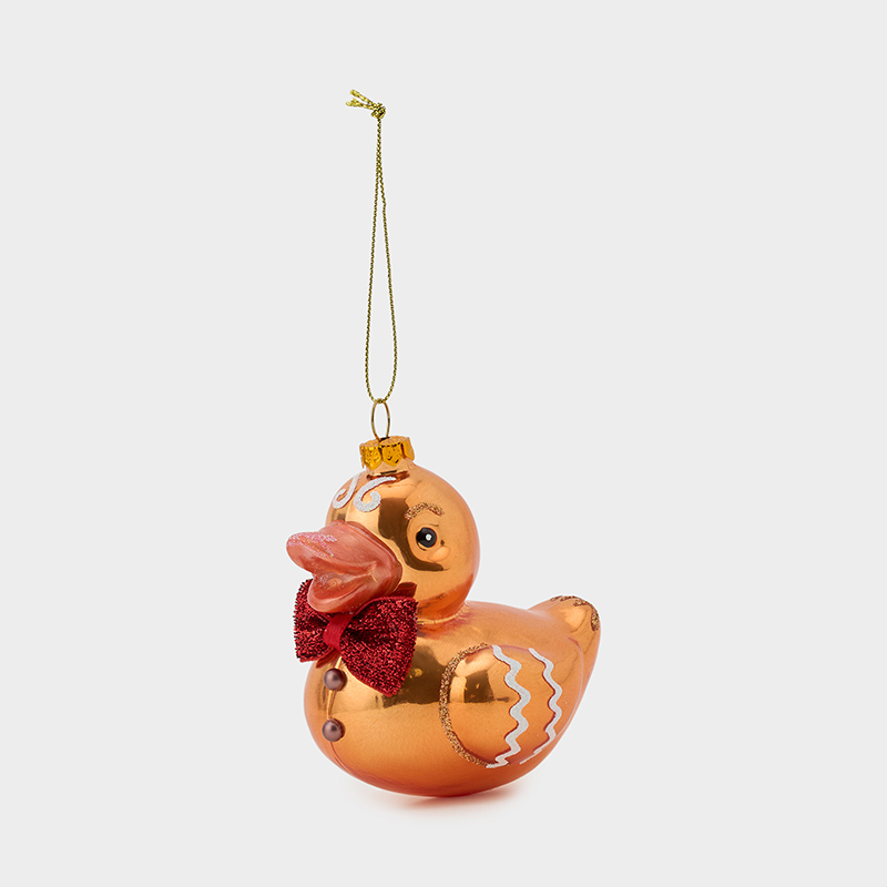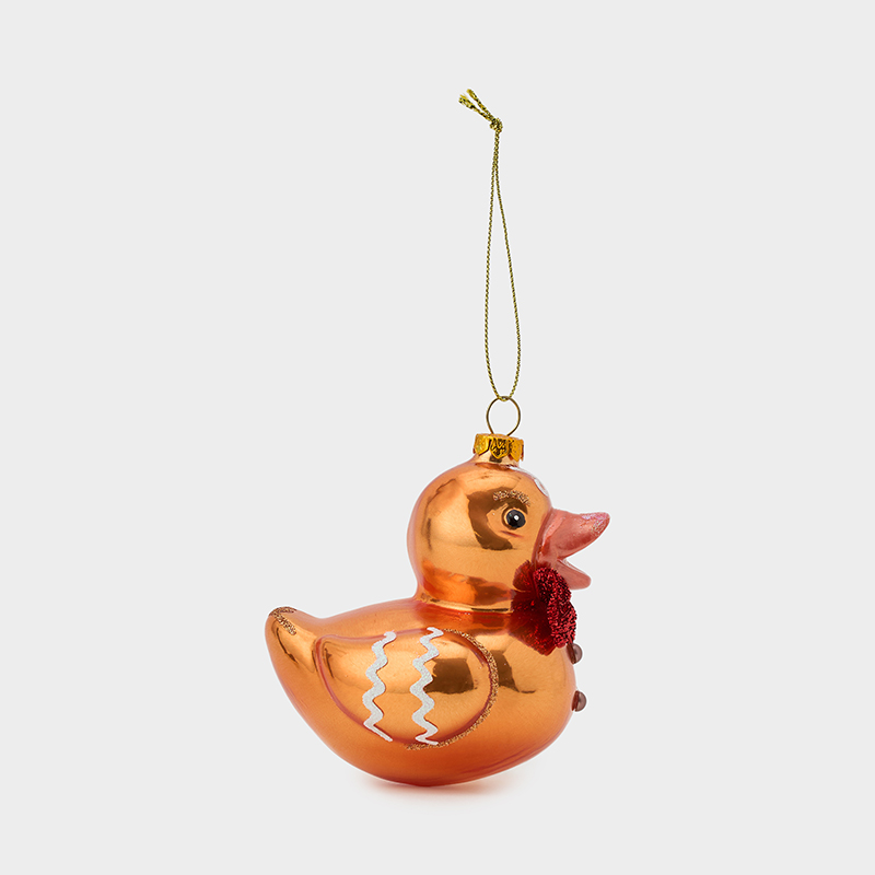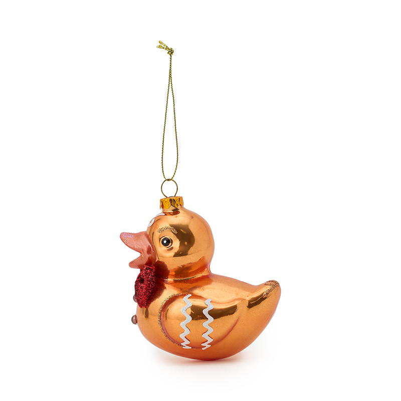 GLS FABR.DUCK W/BOW ORN GLD/RD 10CM