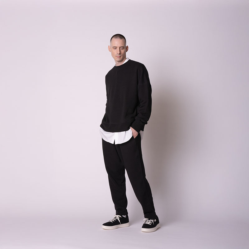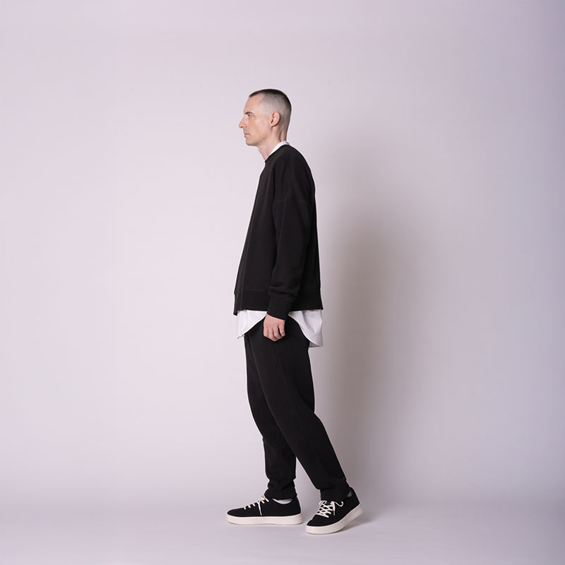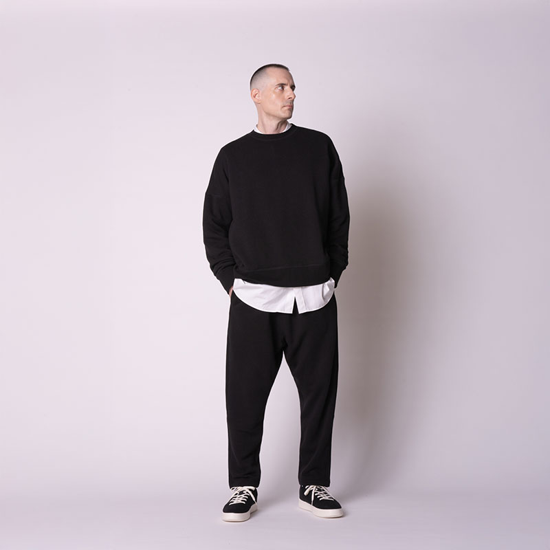 希少な改造編み機で編み上げた柔らかな生地を、オーバーサイズのジェンダーレスなシルエットに仕立てました。