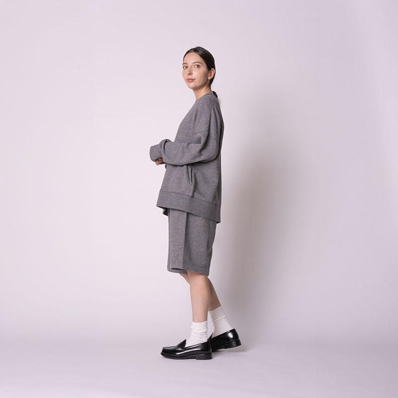 希少な改造編み機で編み上げた柔らかな生地を、オーバーサイズのジェンダーレスなシルエットに仕立てました。