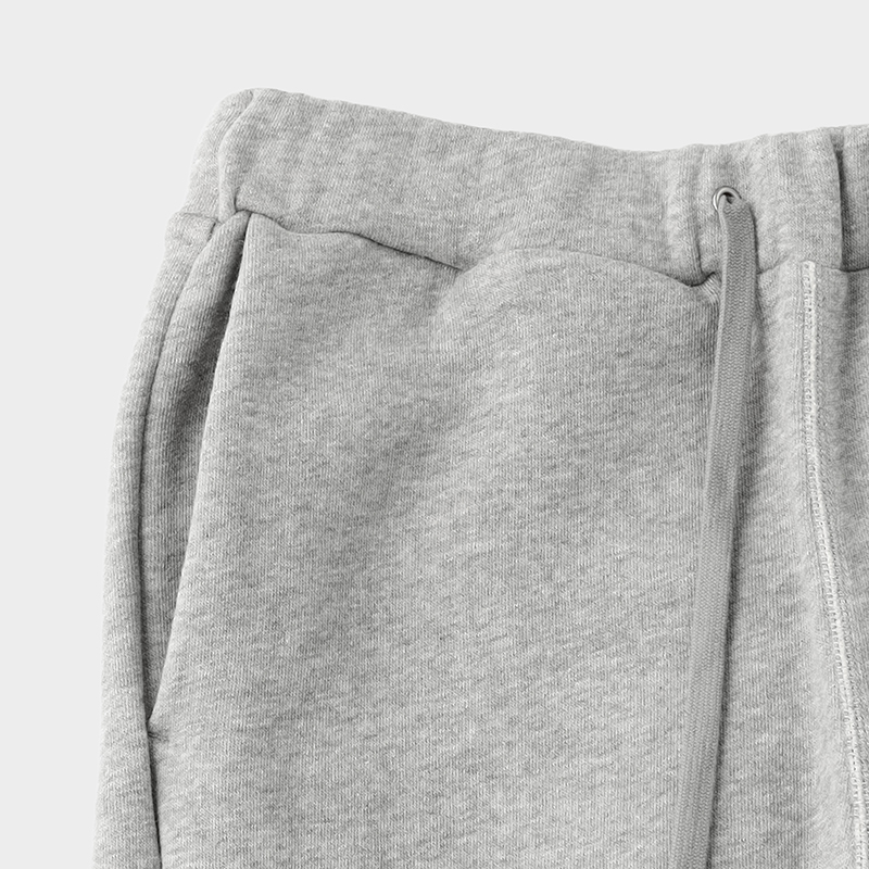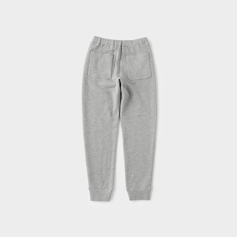 424ベア裏毛の特徴である、裏毛のやわらかな感触・ストレッチ性・軽量性をしっかりと感じられ、裾リブや股下のフライス使いが、古着のスポーツウェアのような雰囲気を演出します。