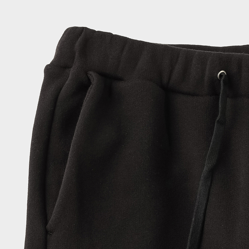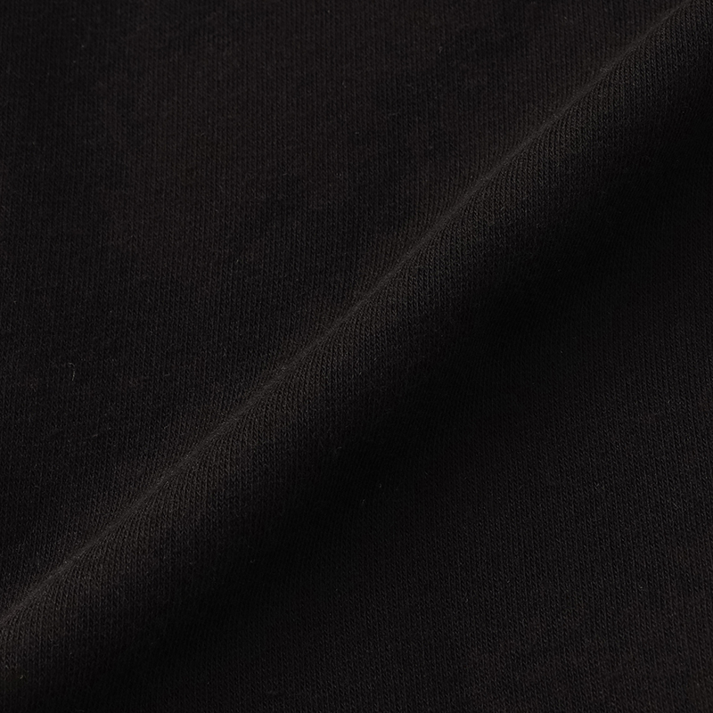 424ベア裏毛の特徴である、裏毛のやわらかな感触・ストレッチ性・軽量性をしっかりと感じられ、裾リブや股下のフライス使いが、古着のスポーツウェアのような雰囲気を演出します。