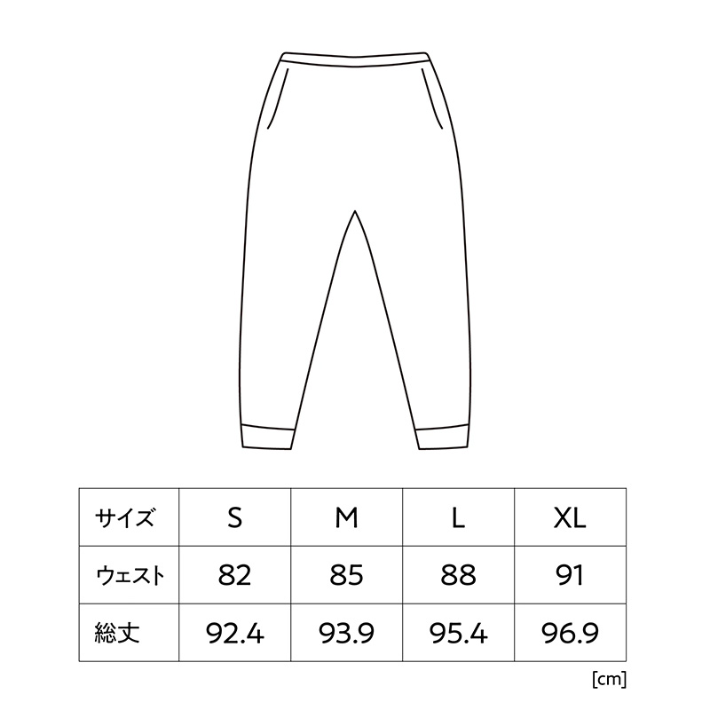 縫製はフライス付け部分を除き、すべてフラットシーマで仕上げているため、裏面が肌に触れてもごろつきにくく、快適な履き心地です。裾と股下にはトップスと同様のフライスを使用しています。
