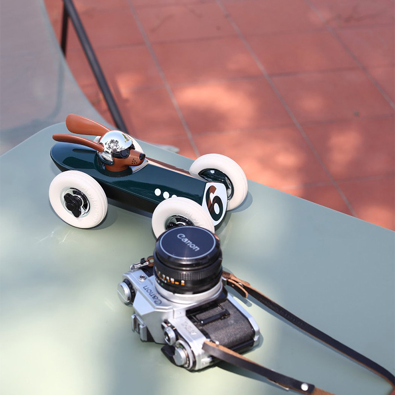 1920~60年代のクラシックカーやレーシングカーなど、レトロな乗り物をモチーフにした高品質かつデザイン性に優れたアートトイを手掛けるイギリスのメーカー。素材から仕上げまで徹底的に品質にこだわっており、カラフルでアーティスティックなデザインは、小さなお子様の車トイとしてだけでなく、大人向けのインテリアやコレクションとしてもお楽しみいただけます。Rufus(ルーファス)は、クーナスタイルのスピードレーサー。