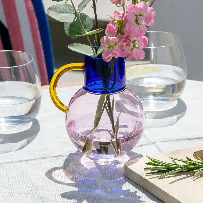 PABLO GLASS JUG S PINK COBALT YELLOW